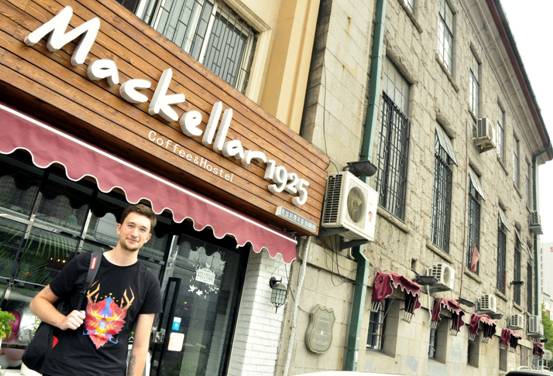 照片里出镜的是德国小伙ole Koenig,中文名欧阳哲,喜欢中国文化的他在游览过北京上海后,8月中旬来到了中国之行的下一站——青岛,这次,他打算在这个气候宜人的城市停留一个月,这张照片是最近他游览德国风情街时拍下的。
