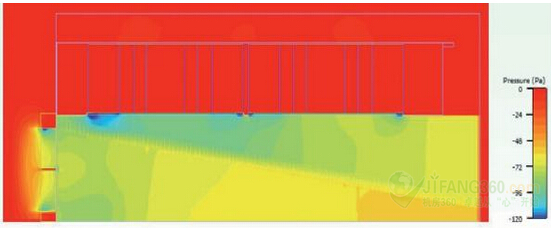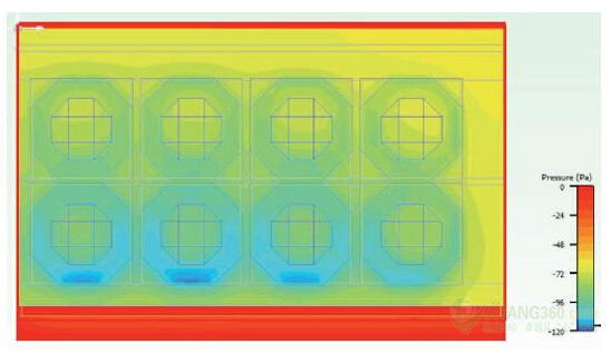 图4:风扇进气口的静态压力(0.2立方米/秒)。