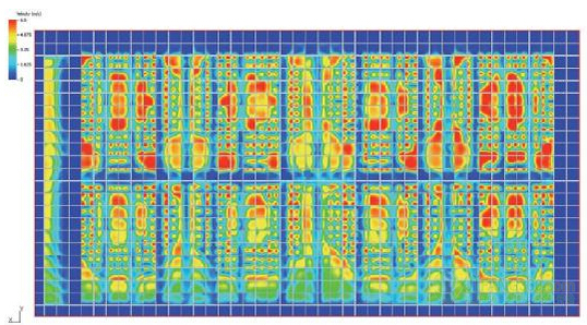 在创建一个组件,使每个插槽的气流均匀统一之前,我们决定看看仿真模拟空气流量,而不考虑漩涡。我们观察到在远离风扇75毫米的一定距离,速度变化仍然非常重要(图8)。